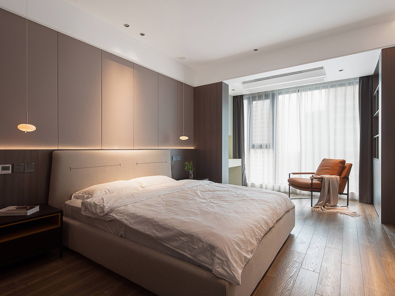 开关的设计一定注意要在入户的位置与床边分别安装一个,更加符合生活的需求,不用费事跑到门口关灯后再抹黑回到床上。