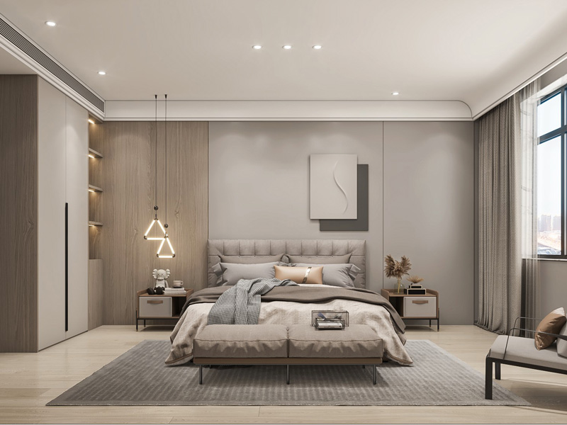1.墙面隔音:顶面不做隔音的话,以后楼上有一点动静都很容易传下来,对于睡眠浅的人很容易造成影响,可以采取吊顶设计,增强卧室顶面的隔音,墙面隔音可以采用木饰面或者隔音棉的设计,可以达到很好的隔音效果。