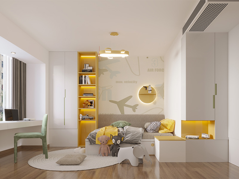 对小户型家庭来讲,合理的空间布局,可以增加空间收纳,还不会影响空间的通透感。作为小户型的儿童房可以像下面这样装修设计,打造成多功能儿童房空间。