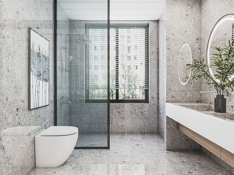 卫生间面积小,在挑选瓷砖时,建议使用小尺寸的,一方面可以彰显空间的宽阔感,一方面也可以避免增加瓷砖的损耗率。