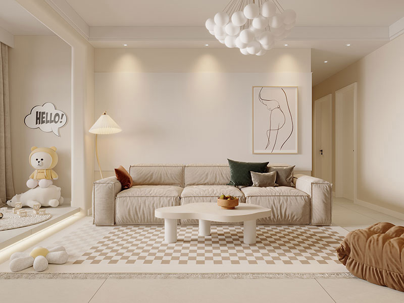 在装修客厅空间时,可以将客厅、阳台、餐厨等空间相打通,实现开放式布局,彰显宽阔视野,同时也能增加家庭成员的交流与互动。