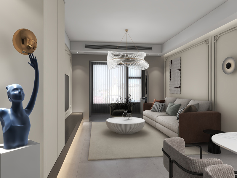 本案例风格定位于现代简约风,简洁艺术的石膏线装饰,增强空间精致的氛围,不同材质于空间中碰撞融合,增进自然感。