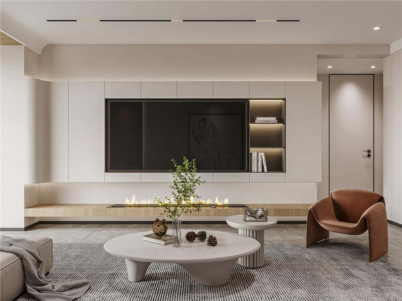 80%的部分设计成封闭样式隐藏杂物,剩下20%设计成开放样式,摆放一些能提升空间美感的摆件和装饰品,这样收纳柜看起来会更加简洁美观。