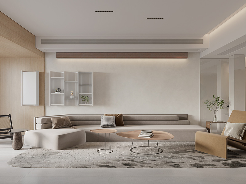 在入户区域建议设计玄关柜,用来放置鞋包,保持入户区域的干净整洁。在客厅也可以适当融入收纳设计,用来放置书籍和遥控器等小件家居物品,同时彰显家居的整洁有序。