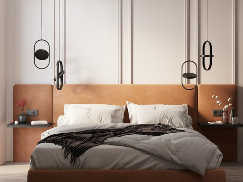 卧室设计感十足,大面积床头融合悬空床头柜的设计,提升空间时尚氛围,使空间更显灵动,大气和谐。