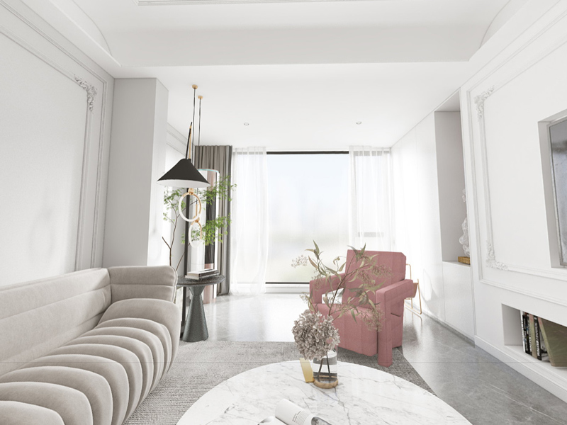 清简淡雅的色彩搭配赋予客厅优雅与活力,搭配浪漫的石膏雕花设计,呈现温润精致的会客氛围纯粹明朗。