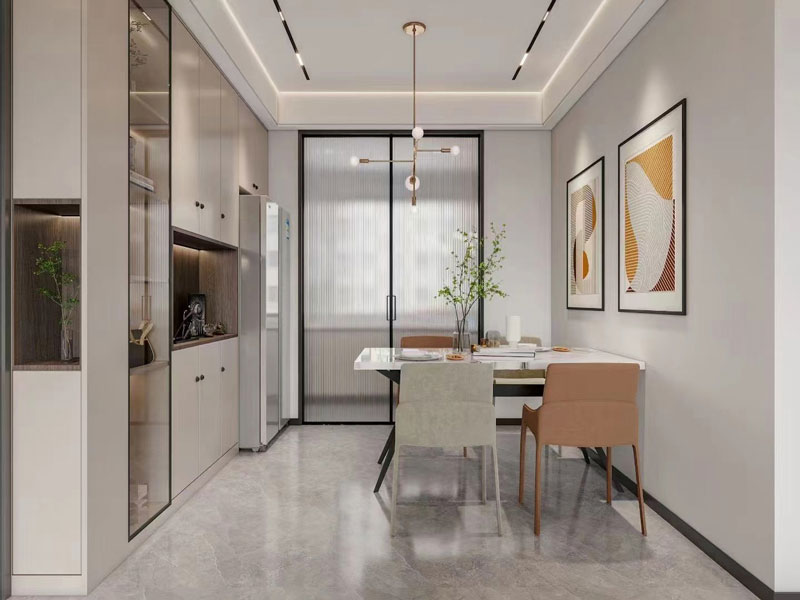 餐厅空间大小决定餐边柜尺寸,空间有限的情况,选择窄款或嵌入式餐边柜,节省空间且保持美观。